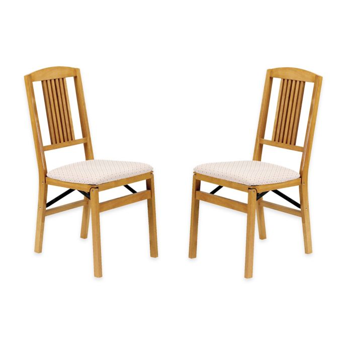 These folding chairs have a simple mission design with six vertical slats coming down from an arched top rail.